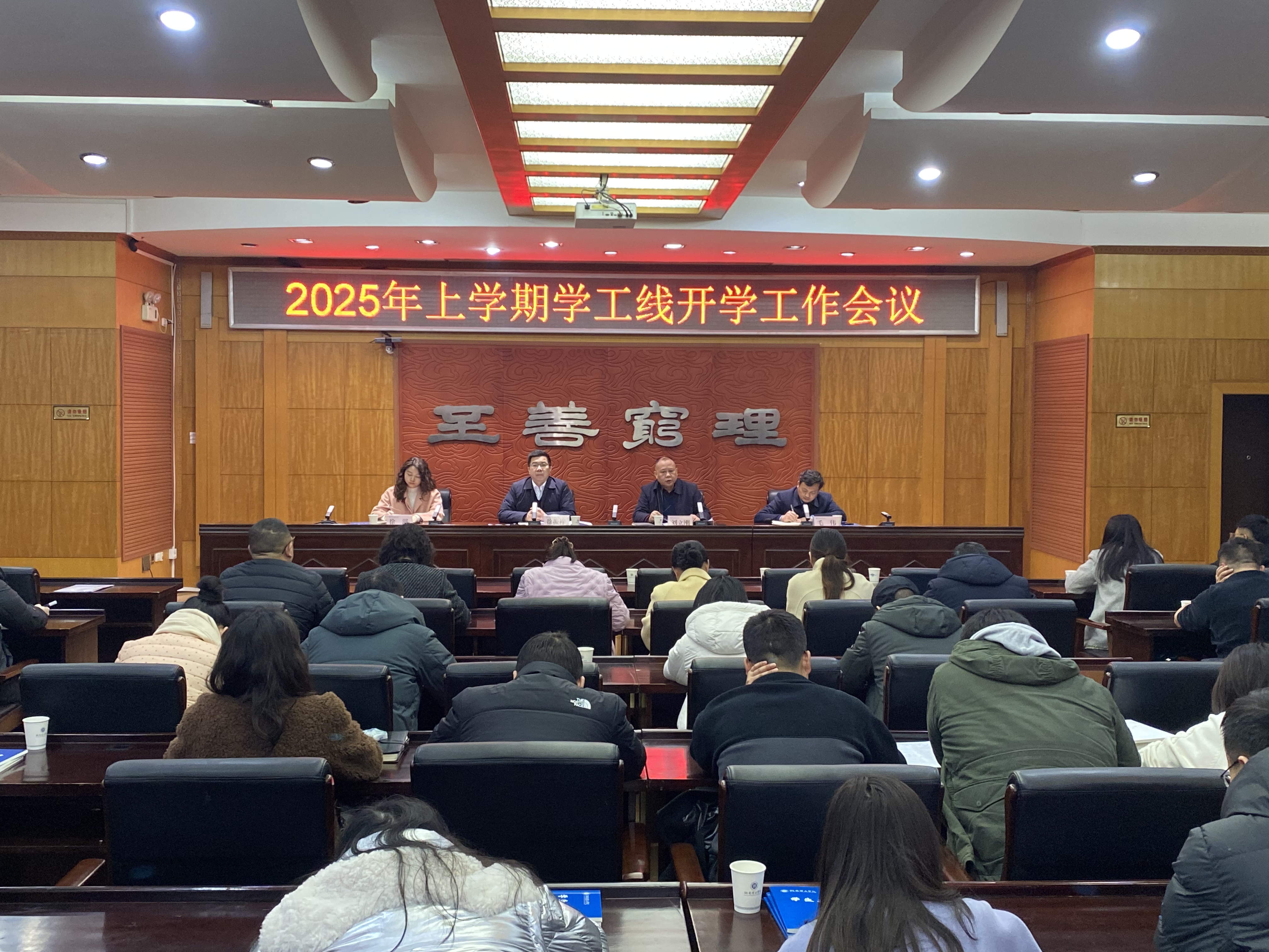 校园网讯2月19日上午,学校2025年上学期学工线开学工作会议在办公楼214会议室举行。党委委员、副校长徐振祥参加并讲话,党委学工部、团委全体工作人员、各学院(系)学生工作负责人、辅导员参加会议。徐振祥充分肯定了过去一年学工、团委及全体学工人所取得的成绩,对2025年学生工作提出了五点要求。一是以思想引领为主线。用习近平新时代中国特色社会主义思想铸魂育人,深入推进大学生理论学习“个十百千”示范引领工程实施,...
