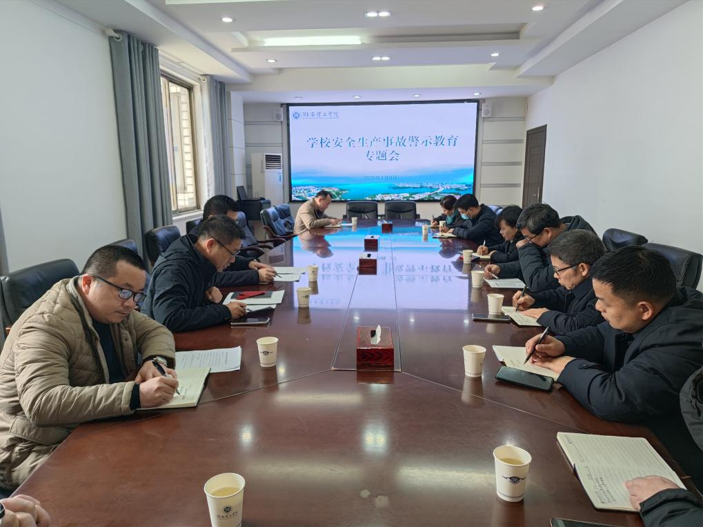 校园网讯 为深入贯彻落实习近平总书记关于安全生产重要指示精神,筑牢校园安全防线,1月9日上午,我校召开安全生产事故警示教育专题会。党委委员、副校长徐振祥出席会议并讲话,相关职能部门及学院负责人参加会议。徐振祥强调,一要明确安全责任,细化安全条款,坚持落实安全管理“三管三必须”工作机制。二要全面开展涉及消防安全、施工安全、“水电气”安全、食品安全、实验室安全等重点领域的安全隐患排查整治,及时消除安全...