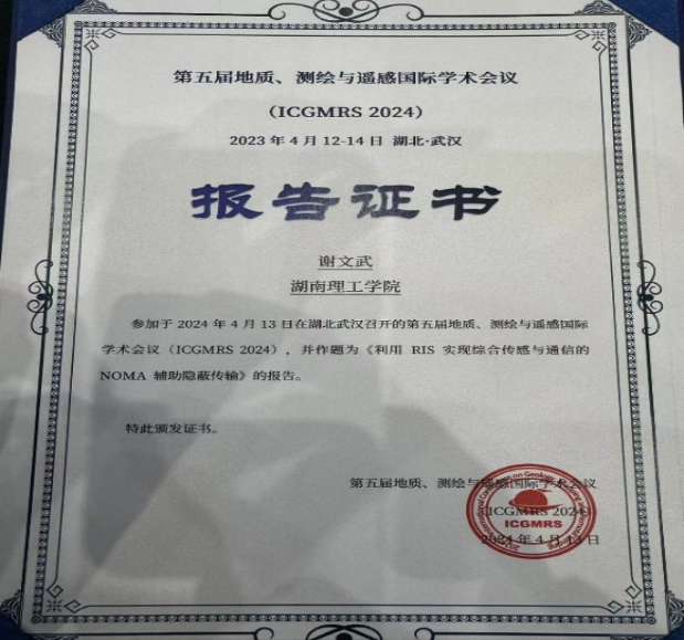 校园网讯 4月12至14日,中国地质大学(武汉)主办的“2024 5th International Conference on Geology, Mapping and Remote Sensing(第五届地质、测绘与遥感国际学术会议)”在武汉顺利举行。此次会议汇聚了来自世界各地的众多专家和学者,我校信息与通信工程学科物联网与边缘智能方向的谢文武副教授,作为特邀专家出席了会议。