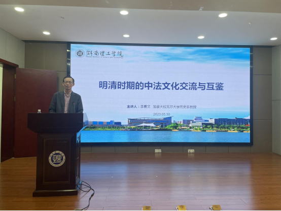 校园网讯 5月30日,我校邀请到海外友好大学加拿大拉瓦尔大学人文学院历史系李晟文教授,为在校学生开展了“明清时期的中法文化交流与互鉴”讲座。本次讲座由国际交流处副处长符婷主持。
