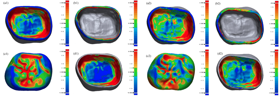 图1 立体光刻3D打印全瓷冠三维偏差比对分析