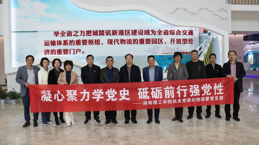 为进一步巩固和深化党史学习教育学习成效,了解岳阳经济发展新气象,4月26日下午,纪检巡督党支部赴城陵矶新港区开展党史学习教育活动。校党委委员、纪委书记、省监委驻校监察专员谢贵辉和支部全体党员参加。