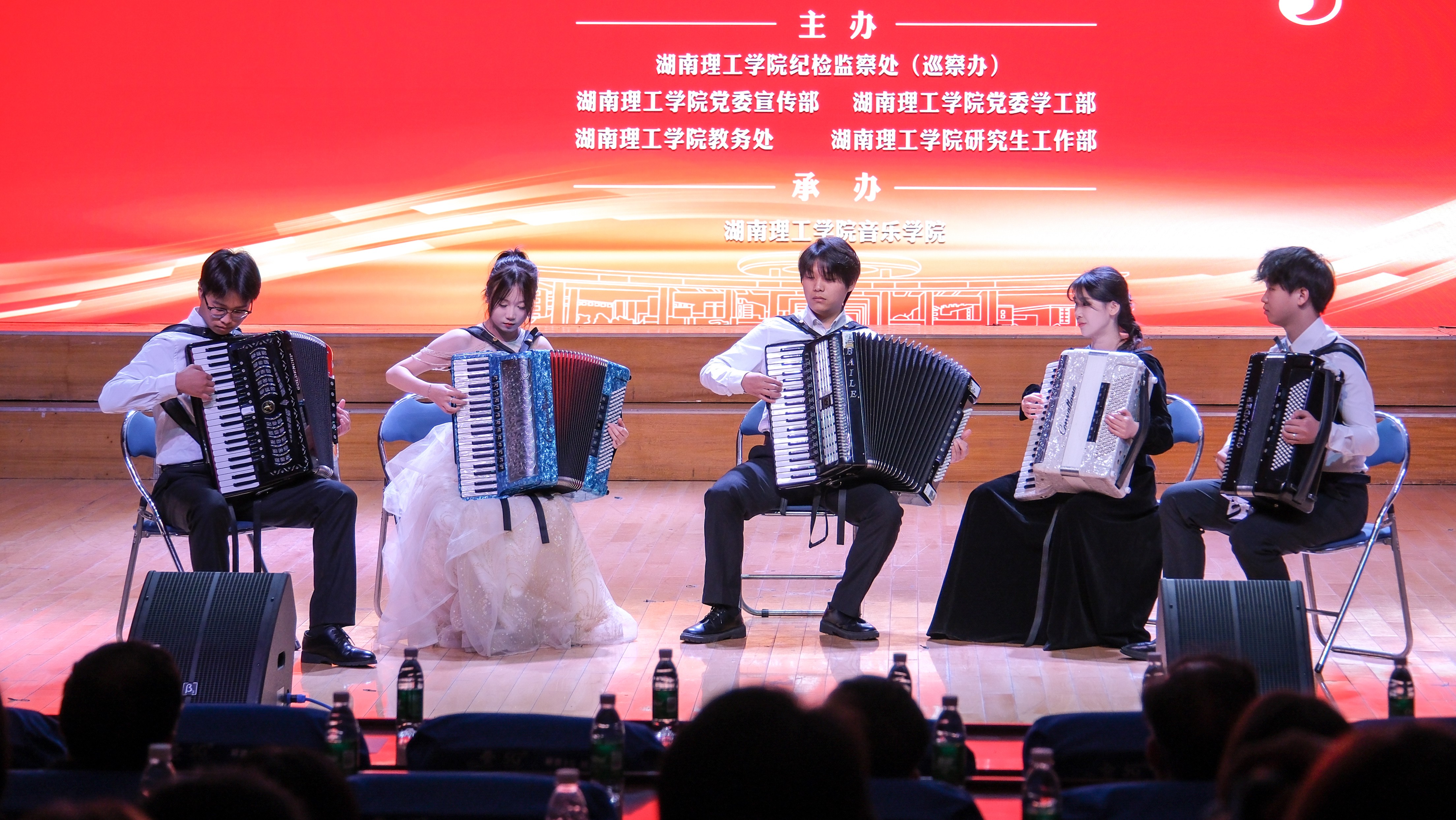 音乐会以钢琴联弹《祝酒歌》昂扬开篇,灵动旋律中满含对奉公奉献者的崇高敬意;《给科学的歌》以悠扬曲调,深情歌颂了科学工作者求真务实、严谨探索的执着精神。萨克斯合奏《浏阳河》重温经典,意蕴绵长,让廉政文化与人民立场深度交融;古筝独奏《行者》以丝绸之路为想象空间,用婉转琴音演绎出跨越千年的音乐史诗。来自雪域高原的舞蹈《心声》以纯净热烈的情感表达了对幸福生活的礼赞以及对风清气正时代的拥护,手风琴合奏《我和我的祖国》《保卫黄河》《钢铁洪流进行曲》激昂澎湃,将对祖国的热爱与清正自守的担当融入铿锵旋律之中。歌曲独唱《我住长江头》旋律悠扬,寓意深远,中阮与钢琴合奏《满江红》在深沉与激昂中交织出精忠报国的豪情与淡泊名利的境界,尽显新时代责任担当。歌曲《不忘初心》以振奋人心的歌声唱响中国共产党的根本宗旨。最后,音乐会在合唱《爱永在》《喜鹊登枝》的美妙音乐中落下帷幕。
