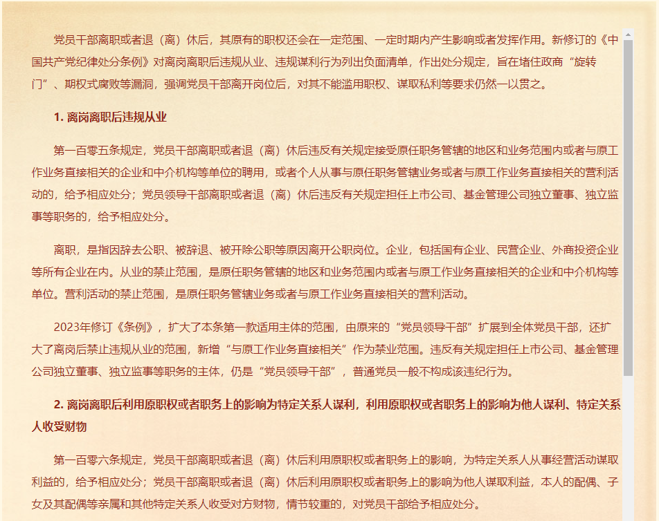 党员干部离岗离职后违规从业、违规谋利的处分规定